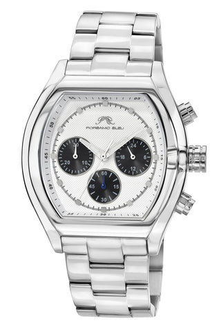Porsamo Bleu Roman Luxury Men's Stainless Steel Chronograph Watch With White Dial, Silver, 1291BROS