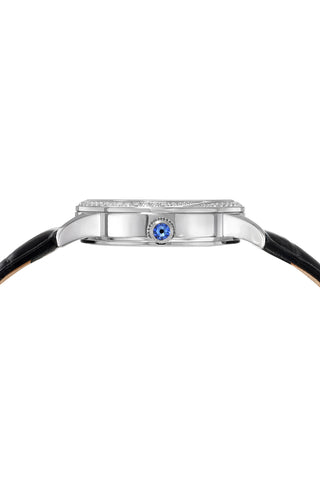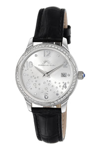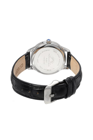 Porsamo Bleu Ruby Luxury Women's Genuine Leather Band Watch, Silver, Black 1141ARUL
