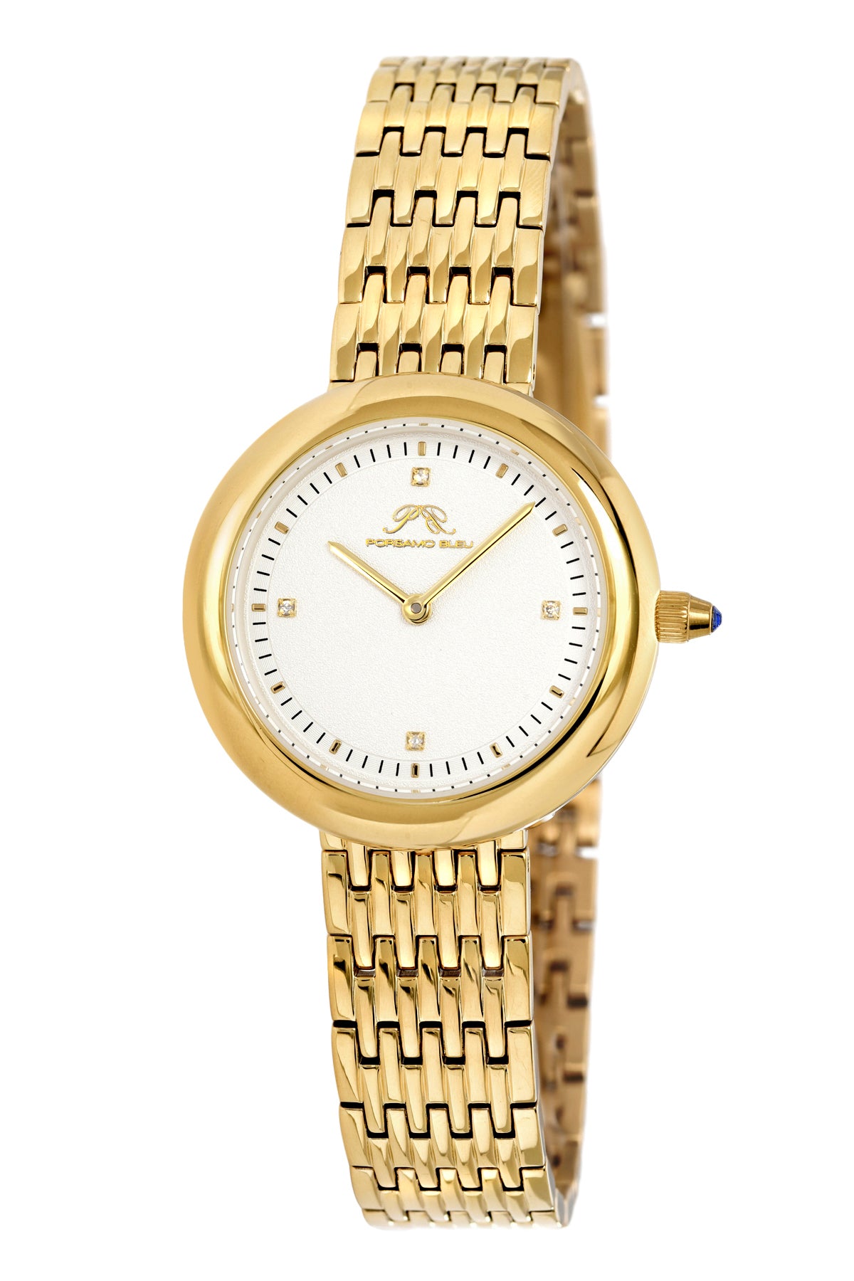 Elegant and bold, the Florentina features a distinctive dial in white, housed in a gold‑tone round stainless steel case. Paired with a stainless steel bracelet, protected by a sapphire‑coated crystal, accented with sparkling diamonds—a timeless piece that balances style and luxury.