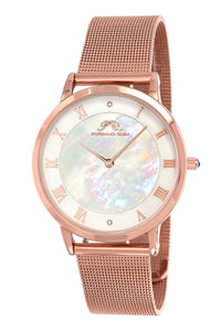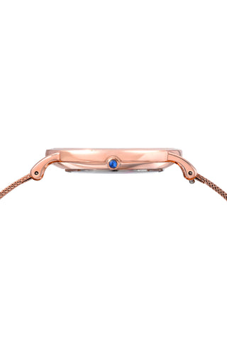 Elegant and modern, the Nina features a mother‑of‑pearl dial in white, housed in a rose‑toned round stainless steel case. Paired with a mesh bracelet, protected by a sapphire‑coated crystal, accented with sparkling diamonds—a timeless piece that balances style and luxury.