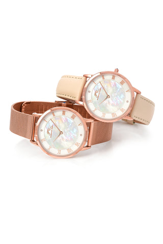 Band:Interchangeable stainless steel mesh and genuine leather bands - two looks in one watch!