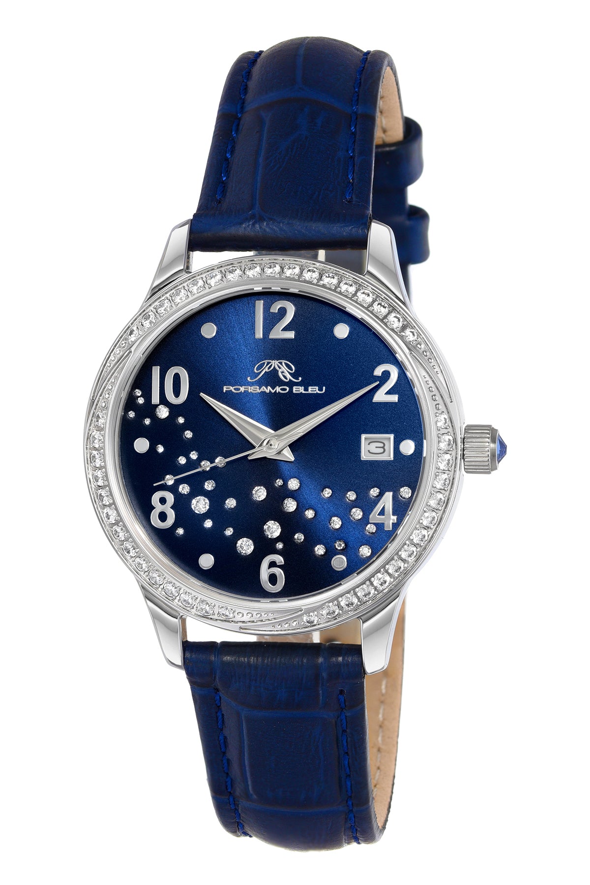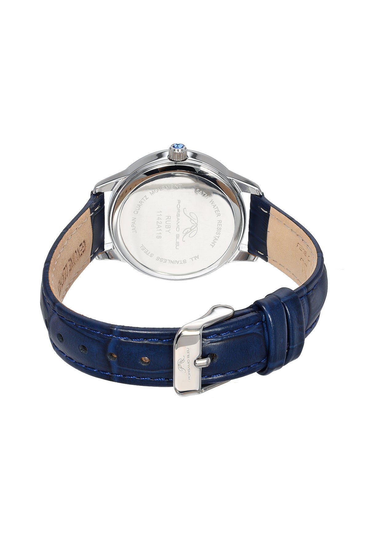 Porsamo Bleu Ruby Luxury Women's Genuine Leather Band Watch, Silver, Blue 1142ARUL