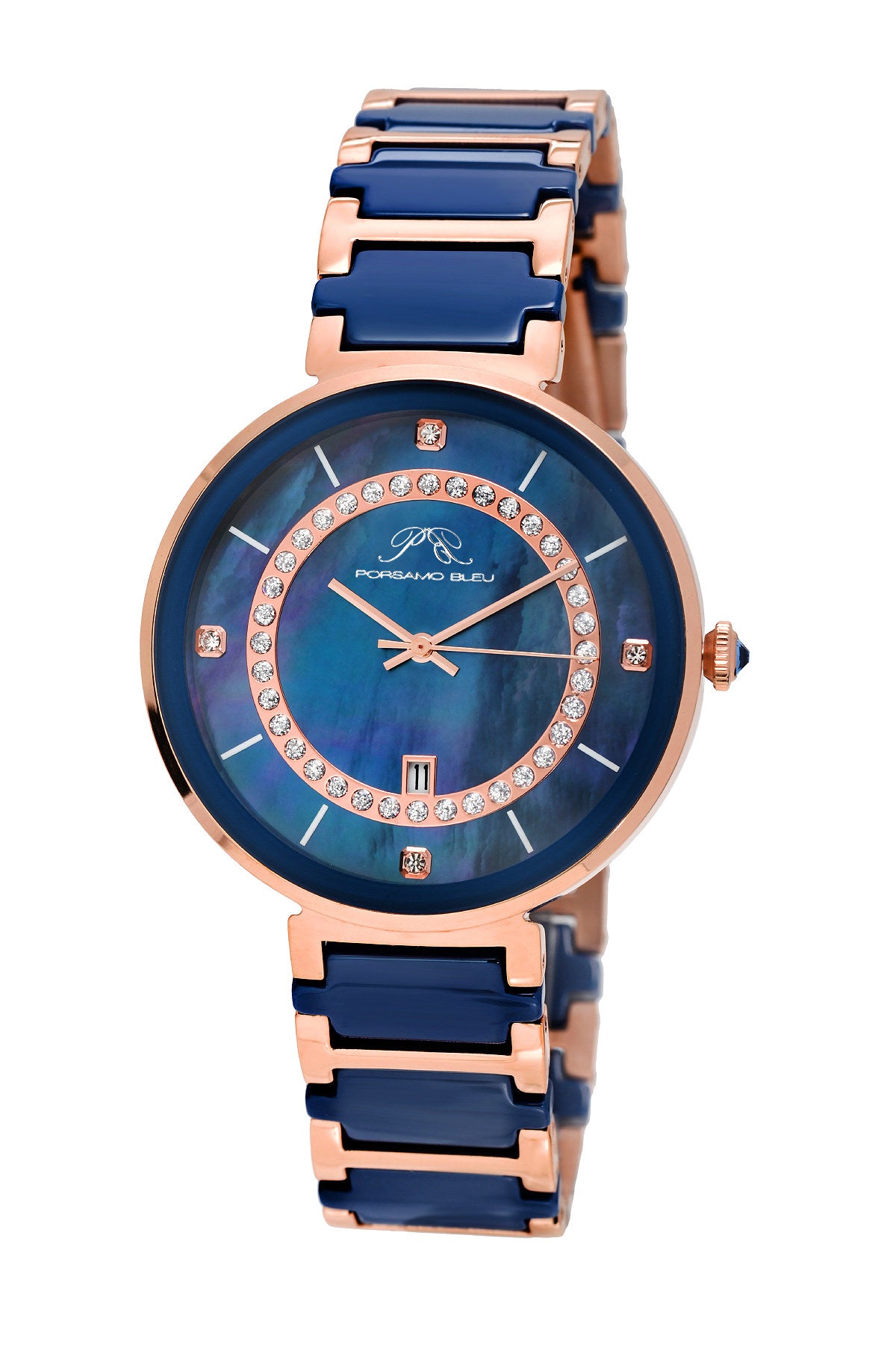 Porsamo Bleu Alexandra Luxury Ceramic Women's Watch, Rose, Blue 792CALC