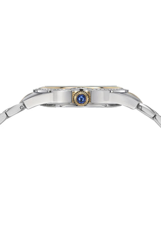Elegant and striking, the Guilia features a guilloché dial in white, housed in a two‑tone round stainless steel case. Paired with a silver and white silicone strap, protected by a sapphire‑coated crystal, a date window keeps you on track—an elegant treasure for any occasion.