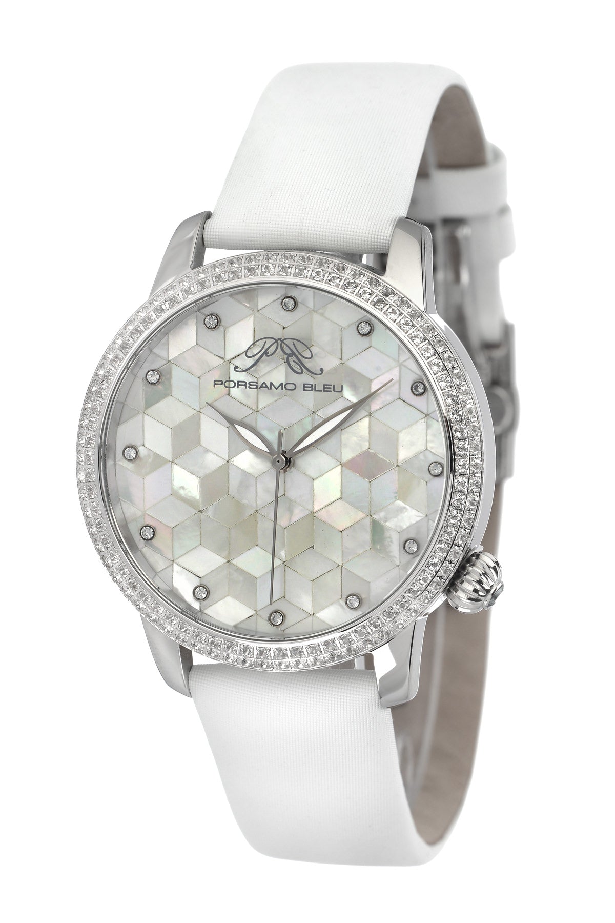 Porsamo Bleu Evelyn Luxury Topaz Women's Watch, Satin Genuine Leather Band, Silver, White 763AEVL Sale