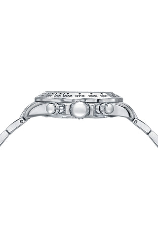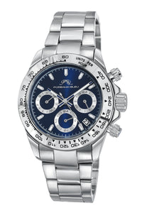 Elegant and modern, the Alexis features a sunray dial in blue, housed in a silver‑tone round stainless steel case. Paired with a silver stainless steel bracelet, protected by a sapphire‑coated crystal, day and date windows keep you on schedule a 24‑hour subdial provides a second time perspective dual time zone display lets you track another city—an elegant treasure for any occasion.