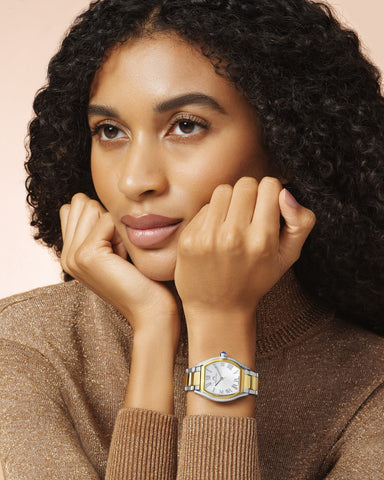 Porsamo Bleu Celine Luxury Tonneau Shaped Women's Crystal Set Bezel Stainless Steel Watch, Two Tone, 1002ECES Sale
