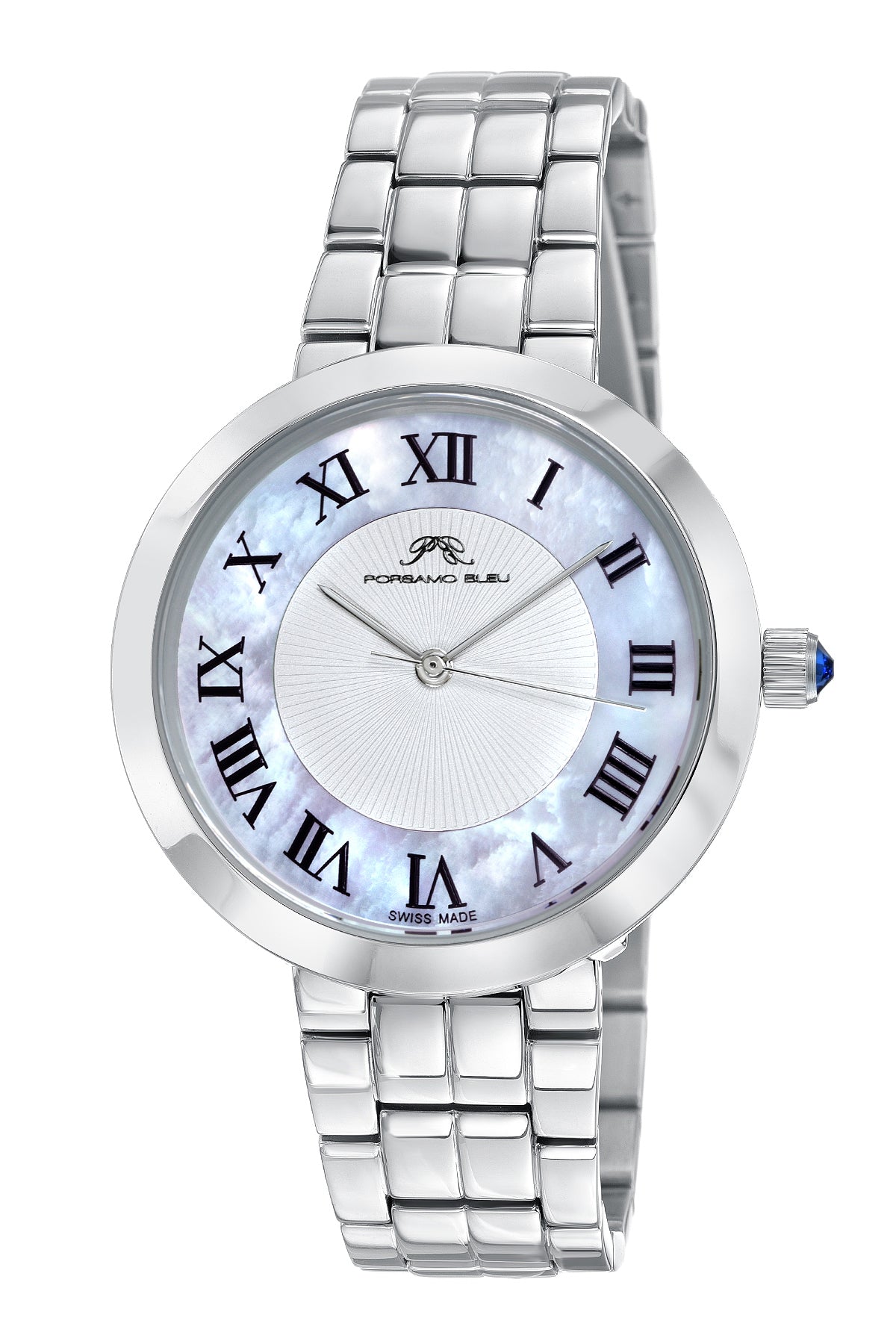 Porsamo Bleu Helena Luxury Women's Stainless Steel Watch, Silver, Baby Blue 1072AHES