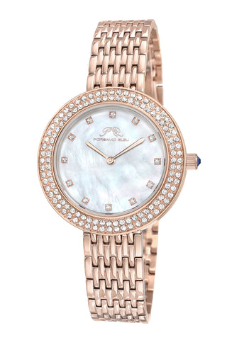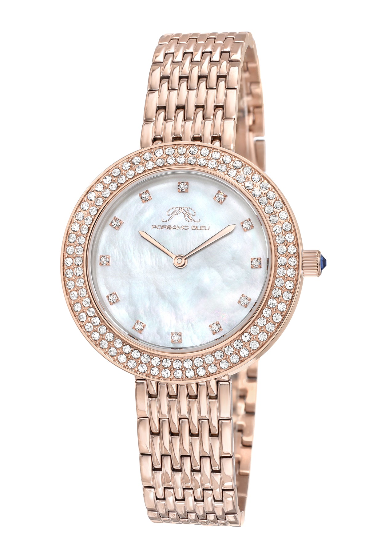 Porsamo Bleu Serena Luxury Women's Crystal Set Bezel Stainless Steel Watch, Rose 1041CSES