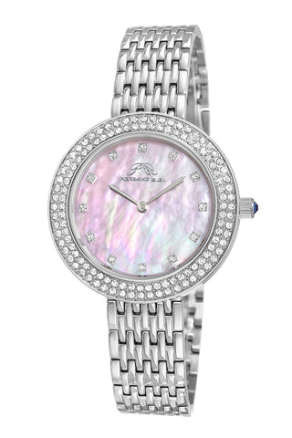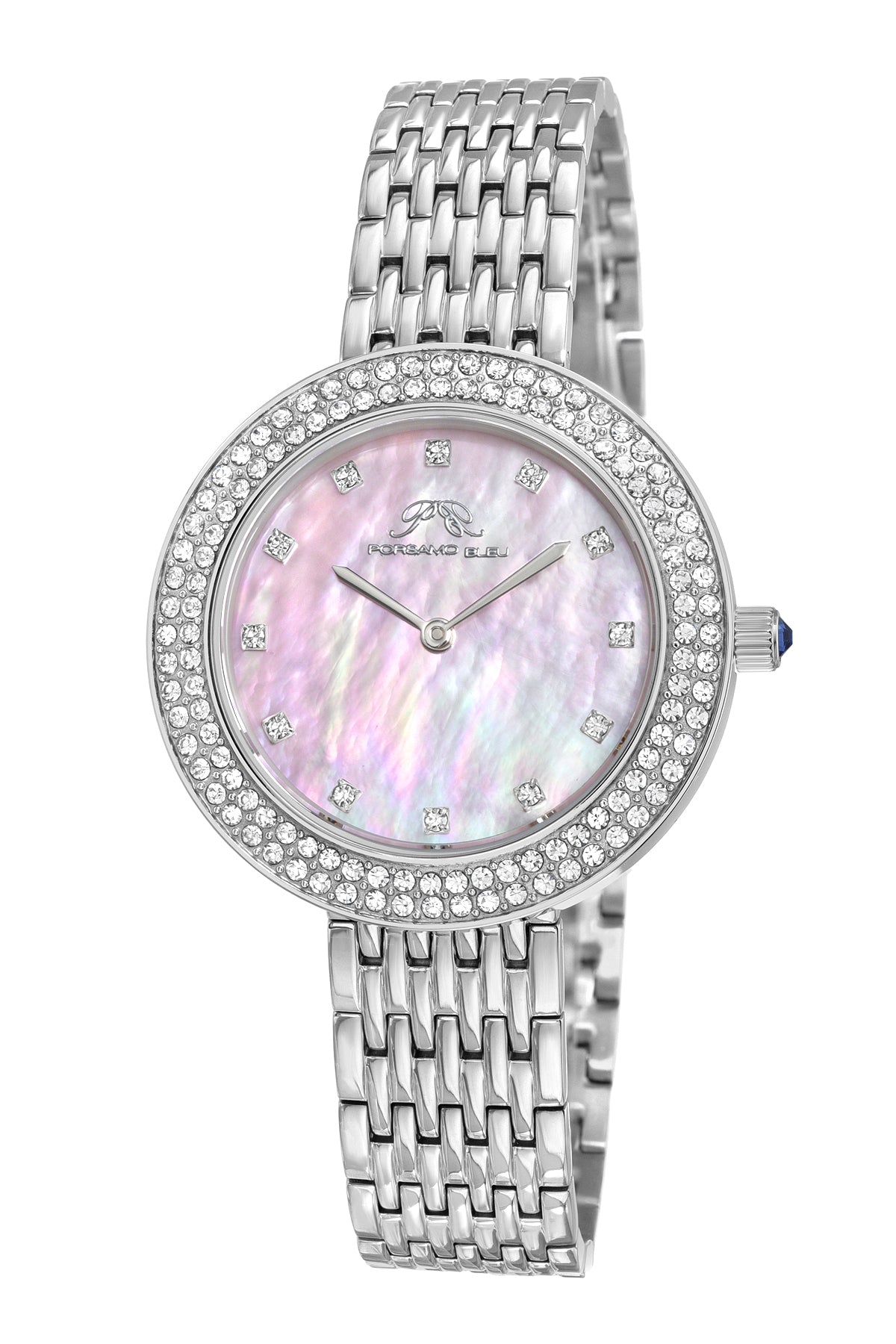 Porsamo Bleu Serena Luxury Women's Crystal Set Bezel Stainless Steel Watch, Silver, Baby Pink 1042CSES