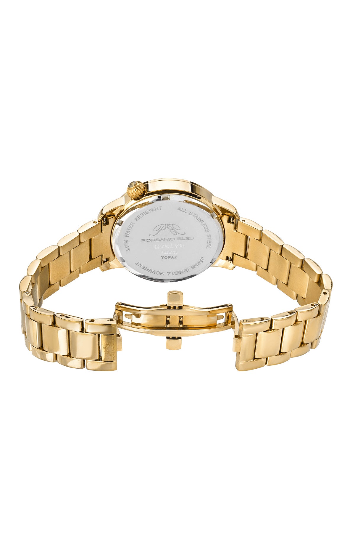 Porsamo Bleu Evelyn Luxury Topaz Women's Stainless Steel Watch, Gold, White 761BEVS