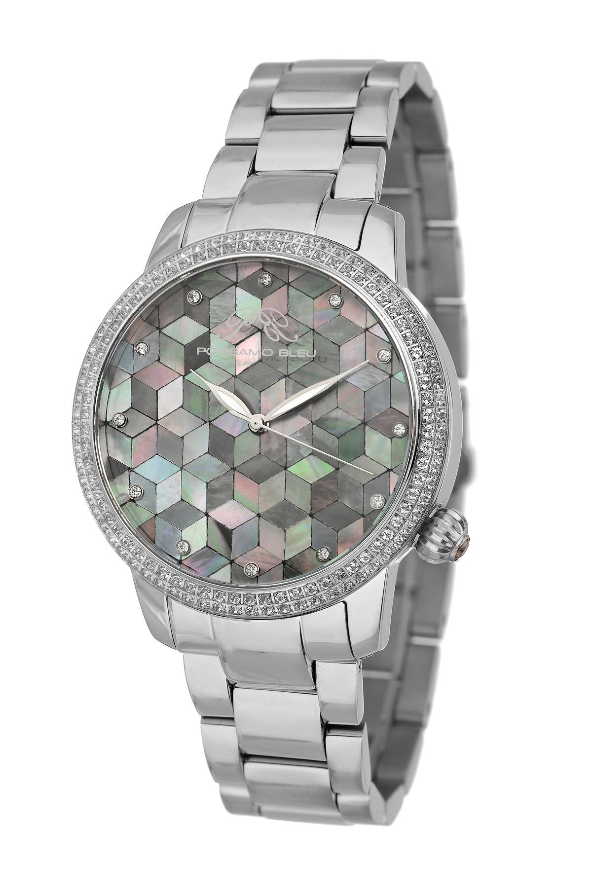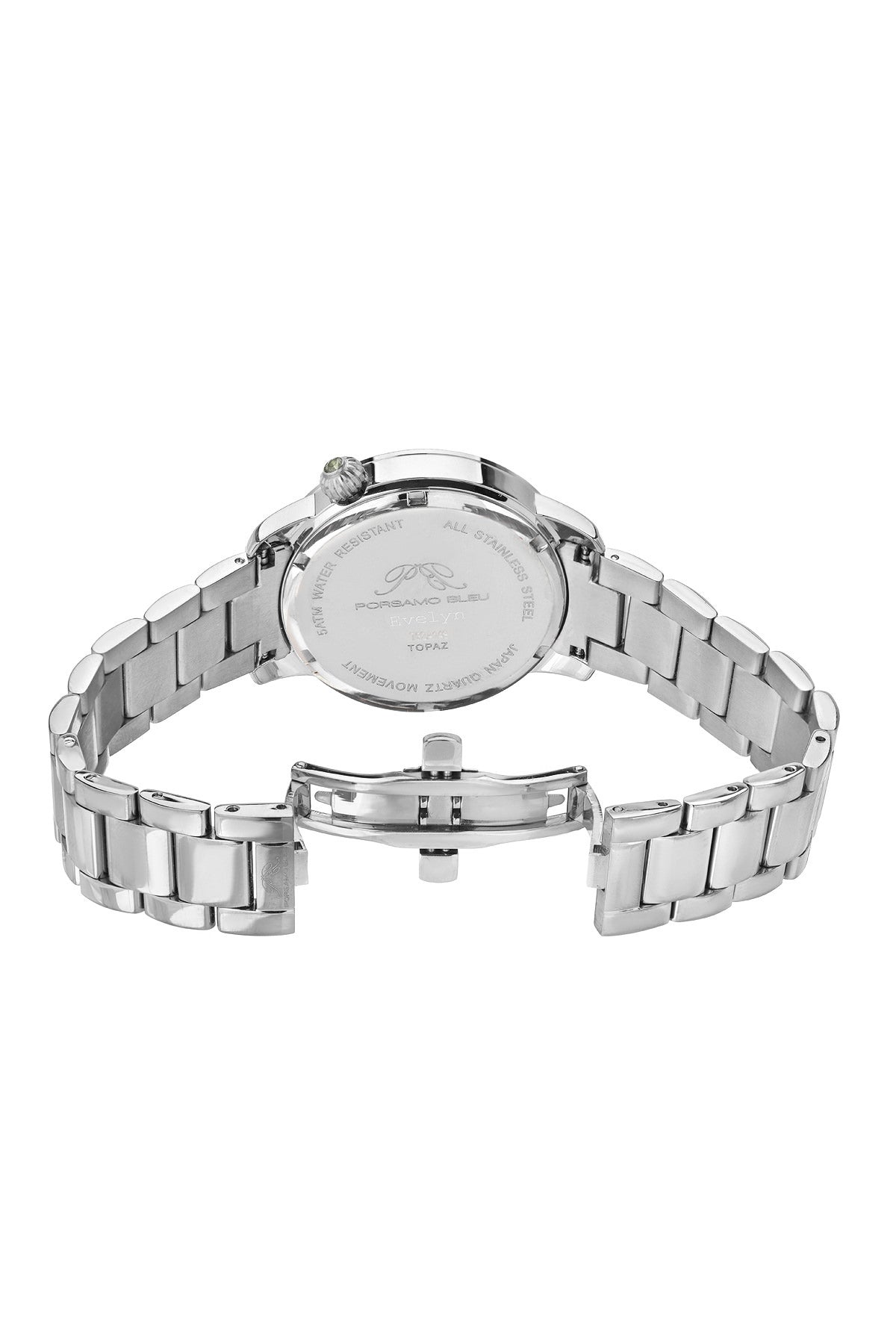 Porsamo Bleu Evelyn Luxury Topaz Women's Stainless Steel Watch, Silver, Black 762AEVS