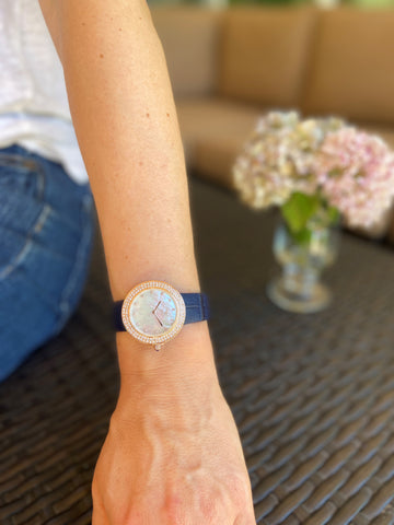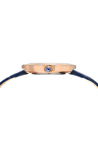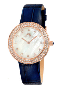 Porsamo Bleu Larissa Luxury Women's Watch, Genuine Leather Band, Crystal Inlaid Bezel, White, Rose, Blue 892CLAL