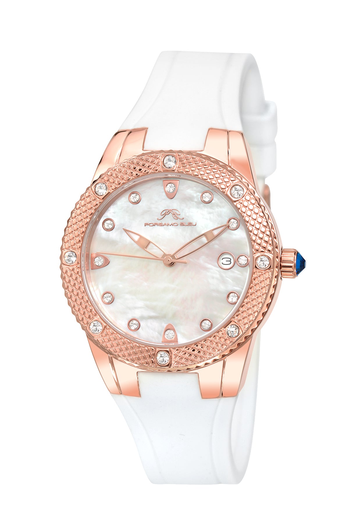 Porsamo Bleu Linda Luxury Women's Watch, Silicone Strap, Rose, White 491CLIR
