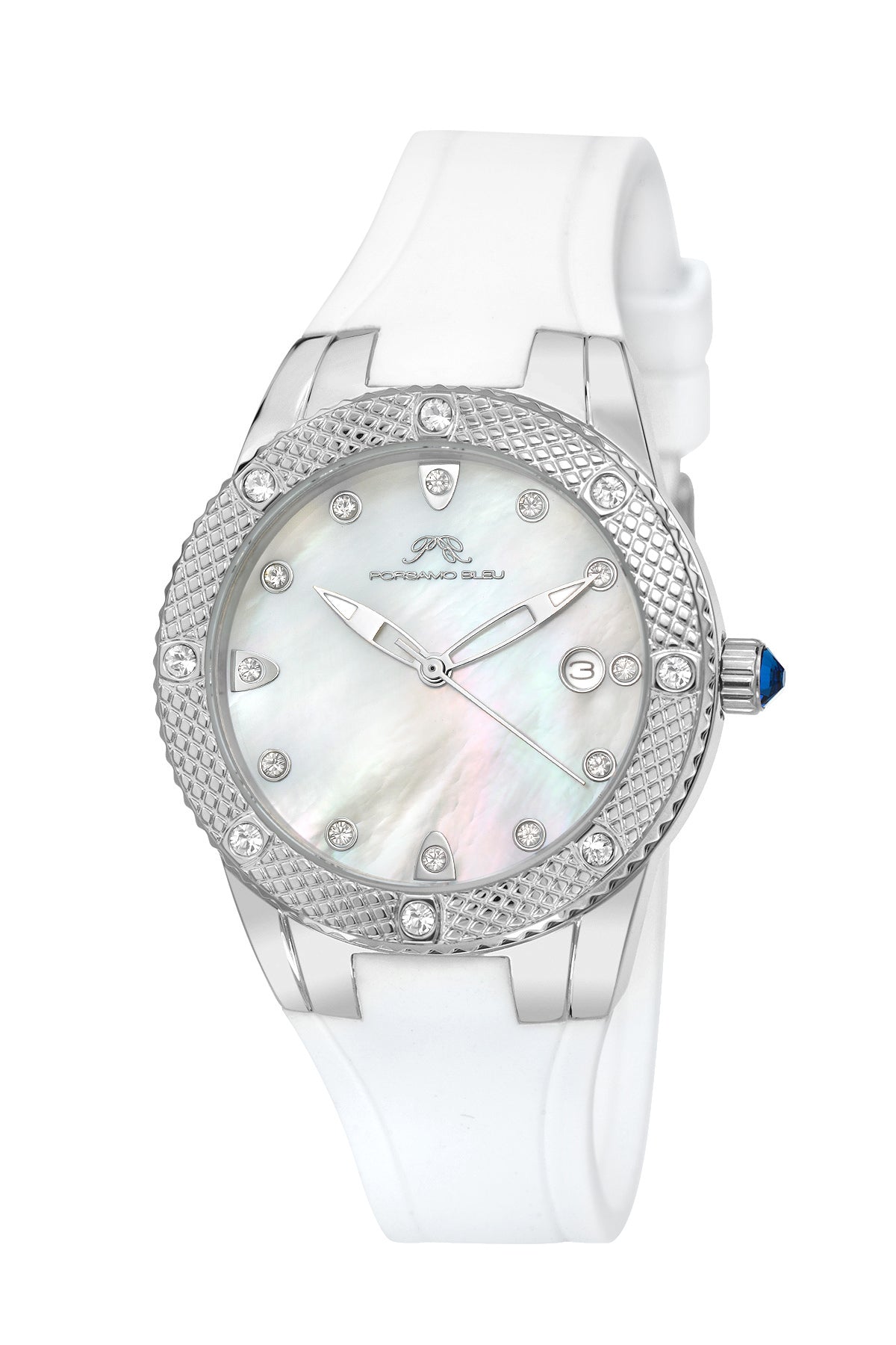 Porsamo Bleu Linda Luxury Women's Watch, Silicone Strap, Silver, White 491ALIR