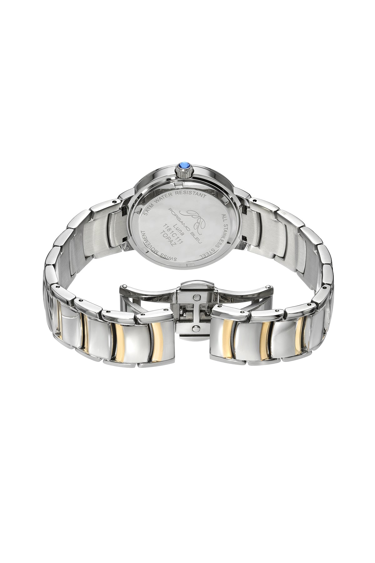 Porsamo Bleu Luna Luxury Topaz Women's Stainless Steel Watch, Two-Tone, White With Flinque Guilloche Dial 1181CLUS