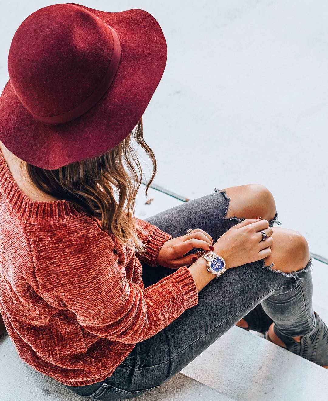 Elegant and refined, the Pilar features a double‑layered in blue, housed in a gold‑tone round stainless steel case. Paired with a stainless steel bracelet, protected by a sapphire‑coated crystal, chronograph subdials track minutes and seconds a 24‑hour subdial provides a second time perspective—a fusion of precision and romance.
