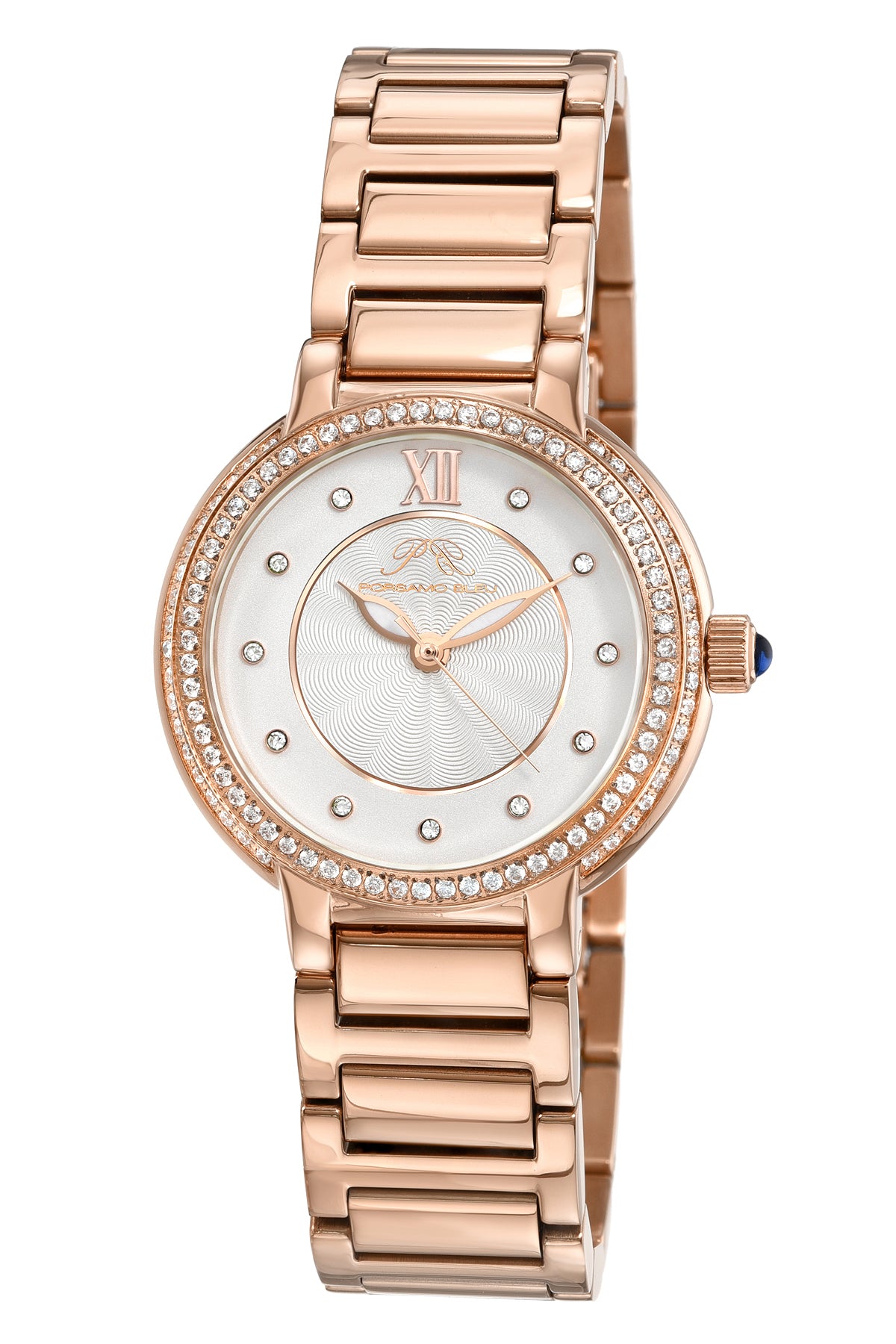 Porsamo Bleu Stella Luxury Crystal Womens Stainless Steel Watch, Rose With Silver Guilloche And Sunray Dial 1191CSTS