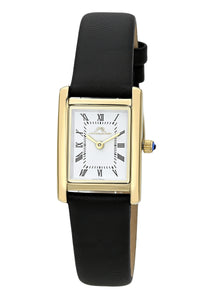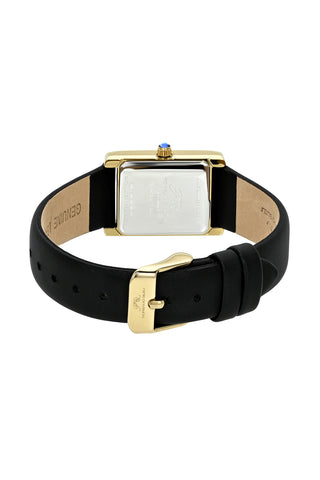 Porsamo Bleu Karolina Luxury Rectangular Women's Genuine Leather Band Watch, gold, black 1086CKAL