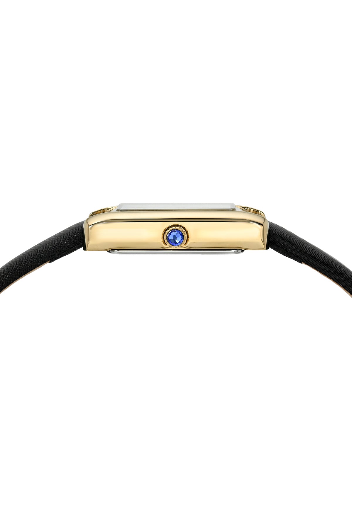 Elegant and timeless, the Karolina features a white dial, housed in a gold tone rectangular stainless steel and supple, black genuine leather band, a timeless piece that balances style and luxury.