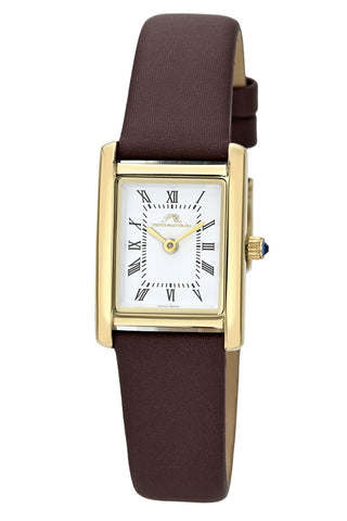 Porsamo Bleu Karolina Luxury Rectangular Women's Genuine Leather Band Watch, gold, brown 1086DKAL
