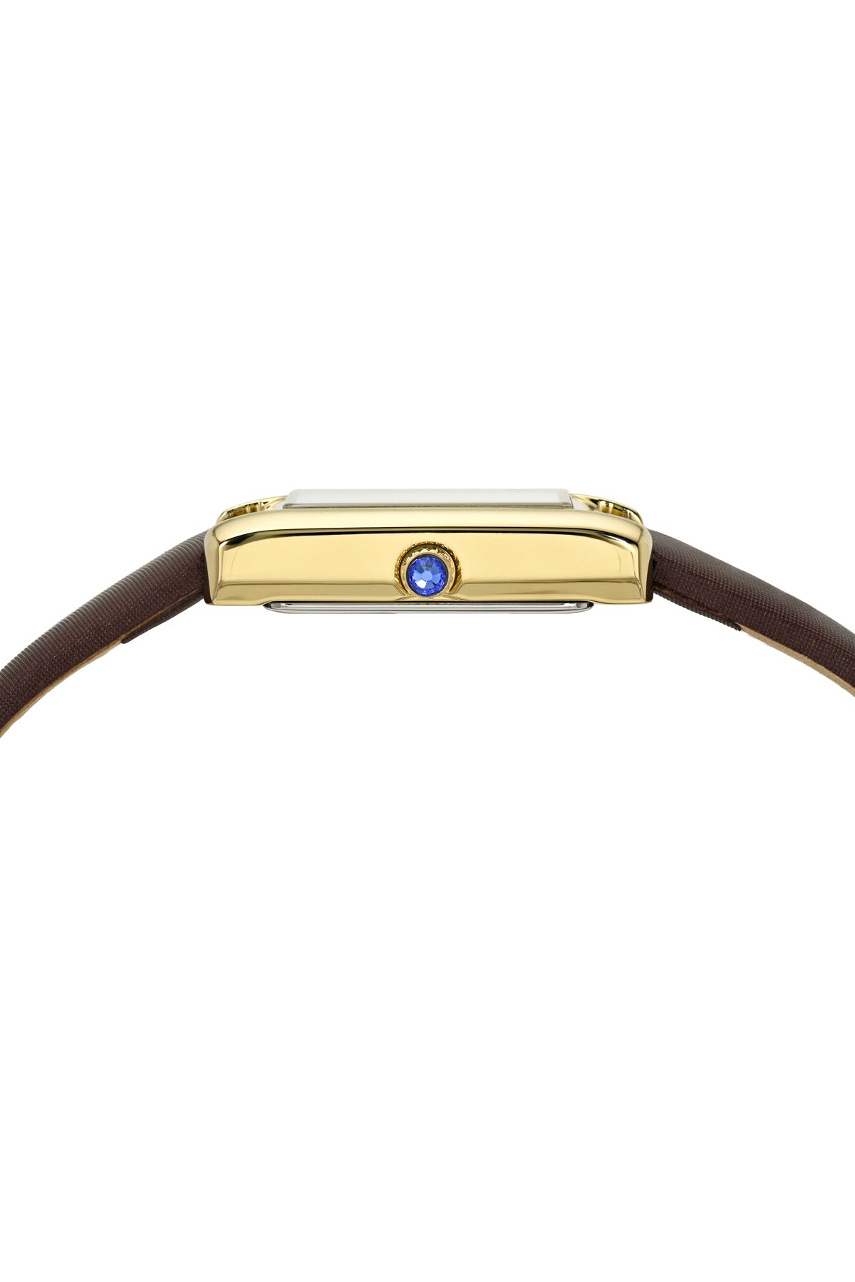 Elegant and timeless, the Karolina features a white dial, housed in a gold tone rectangular stainless steel and supple, brown genuine leather band, a timeless piece that balances style and luxury.