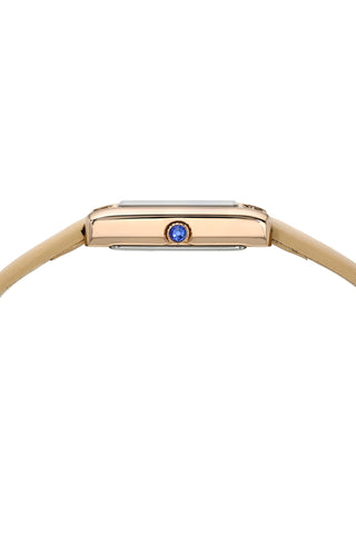 Elegant and timeless, the Karolina features a white dial, housed in a rose tone rectangular stainless steel and supple, beige genuine leather band, a timeless piece that balances style and luxury.