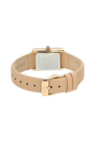 Porsamo Bleu Karolina Luxury Rectangular Women's Genuine Leather Band Watch, rose, beige 1086EKAL