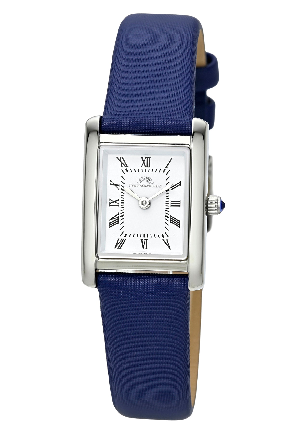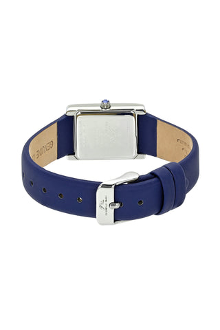 Porsamo Bleu Karolina Luxury Rectangular Women's Genuine Leather Band Watch, silver, blue 1086BKAL