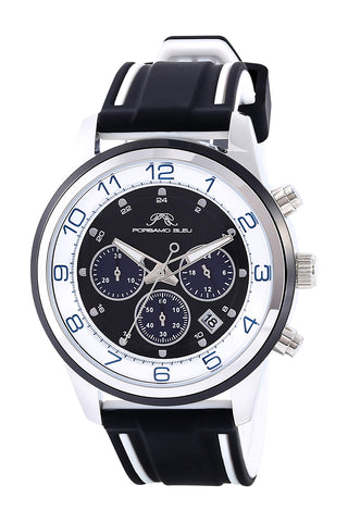 Porsamo Bleu Arthur Luxury Chronograph Men's Silicone Strap Watch, Silver, White, Black, Blue 1094BARR