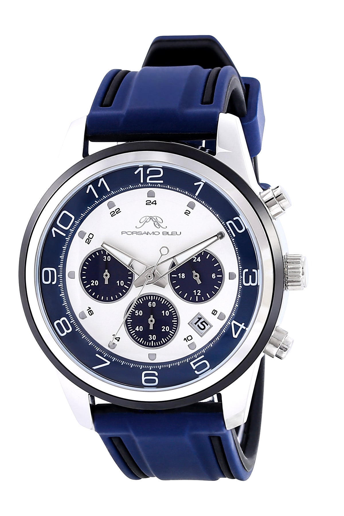 Porsamo Bleu Arthur Luxury Chronograph Men's Silicone Strap Watch, Silver, Blue 1094AARR