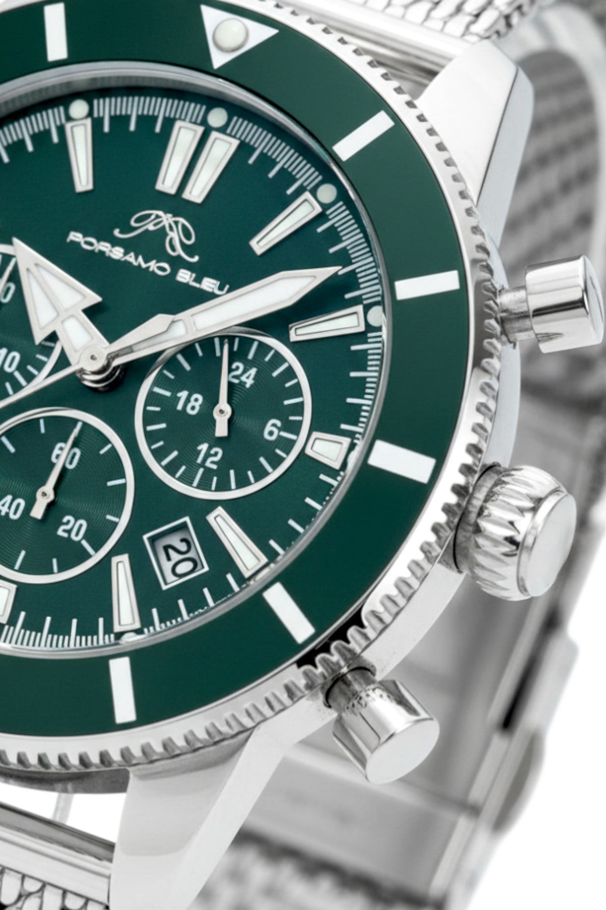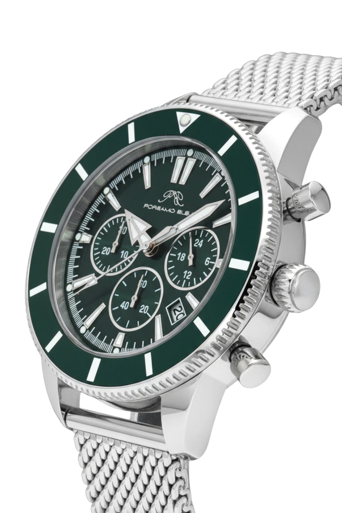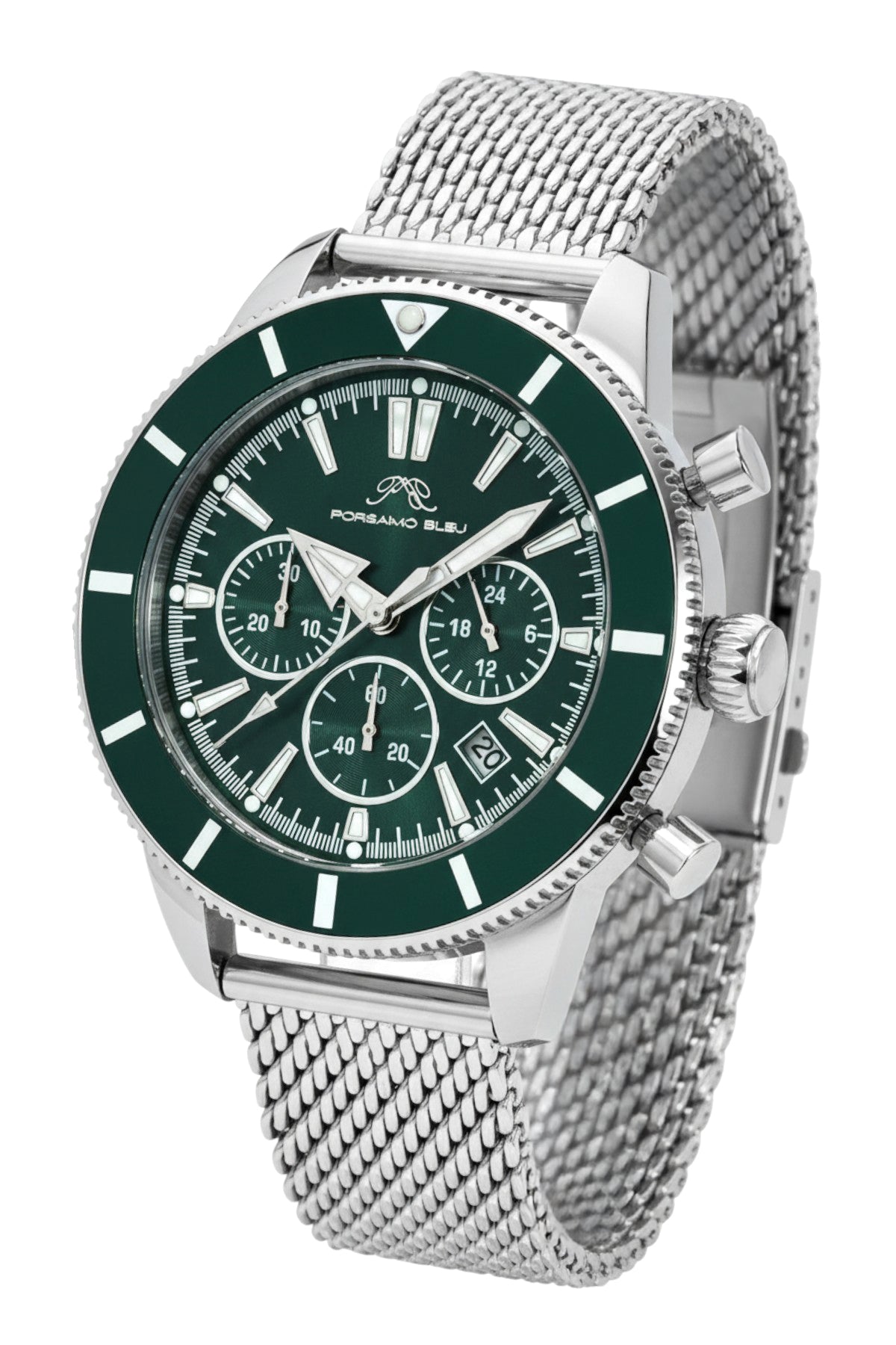 Porsamo Bleu Brandon luxury chronograph men's stainless steel watch, silver, green 1011EBRS