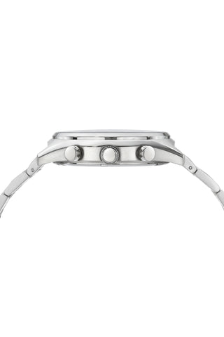 Elegant and refined, the Charlie features a distinctive dial in blue, housed in a silver‑tone round stainless steel case. Paired with a silver stainless steel bracelet, protected by a sapphire‑coated crystal, day and date windows keep you on schedule a 24‑hour subdial provides a second time perspective dual time zone display lets you track another city—an elegant treasure for any occasion.