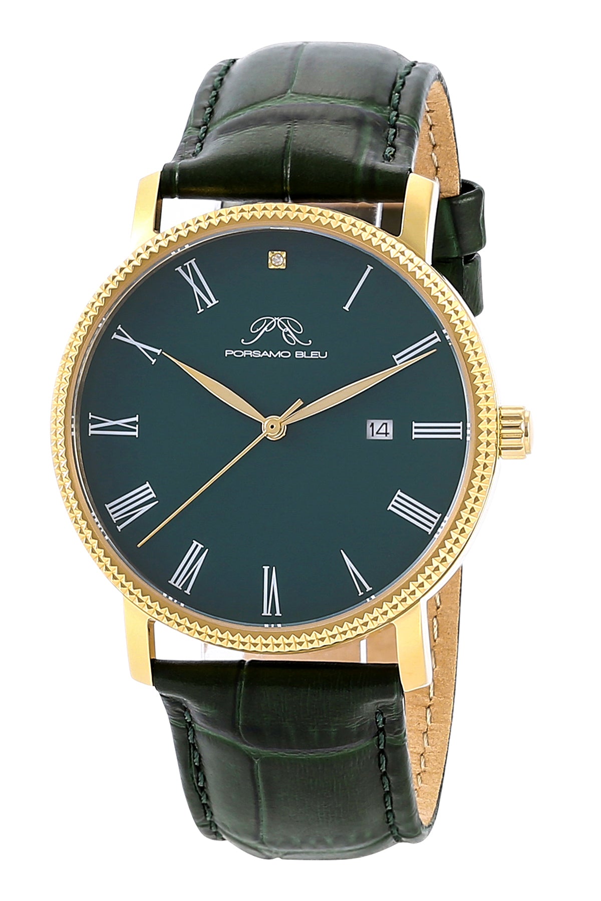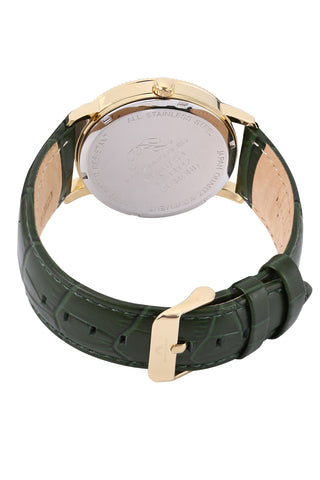 Porsamo Bleu Veritas1 Luxury Men's Diamond Watch Genuine Leather Band, Gold Tone, Green 1361JVEL