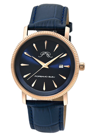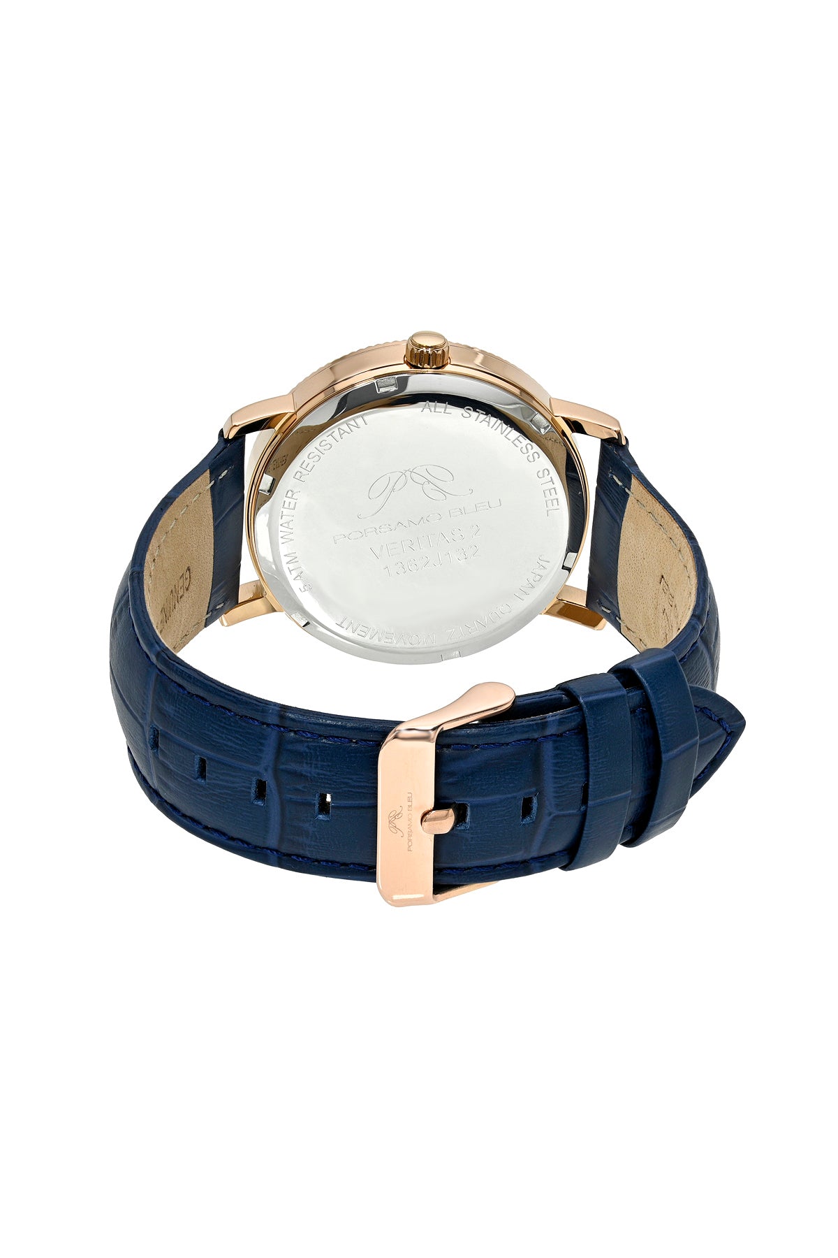 Porsamo Bleu Veritas2 Luxury Men's Watch Genuine Leather Band, Rose Tone, Blue, 1362JVEL