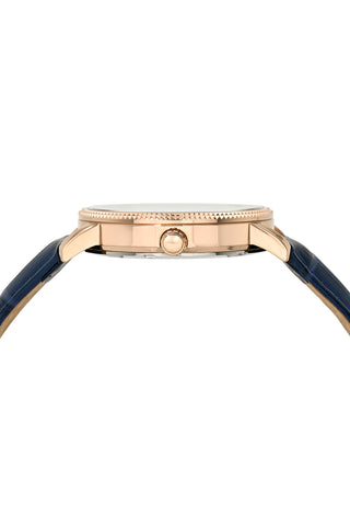 Sophisticated apperance, the Veritas2 features a blue sunray dial with a date window at 3 o'clock, housed in a rose tone round stainless steel coin case and bezel. Paired with a blue genuine leather strap, protected by a sapphire-coated crystal for an elegant every day look