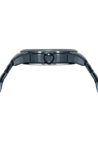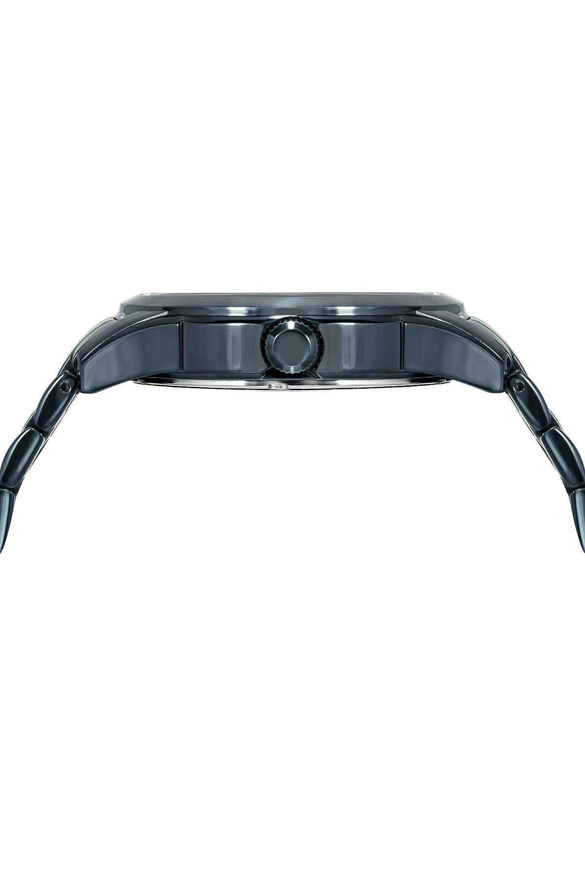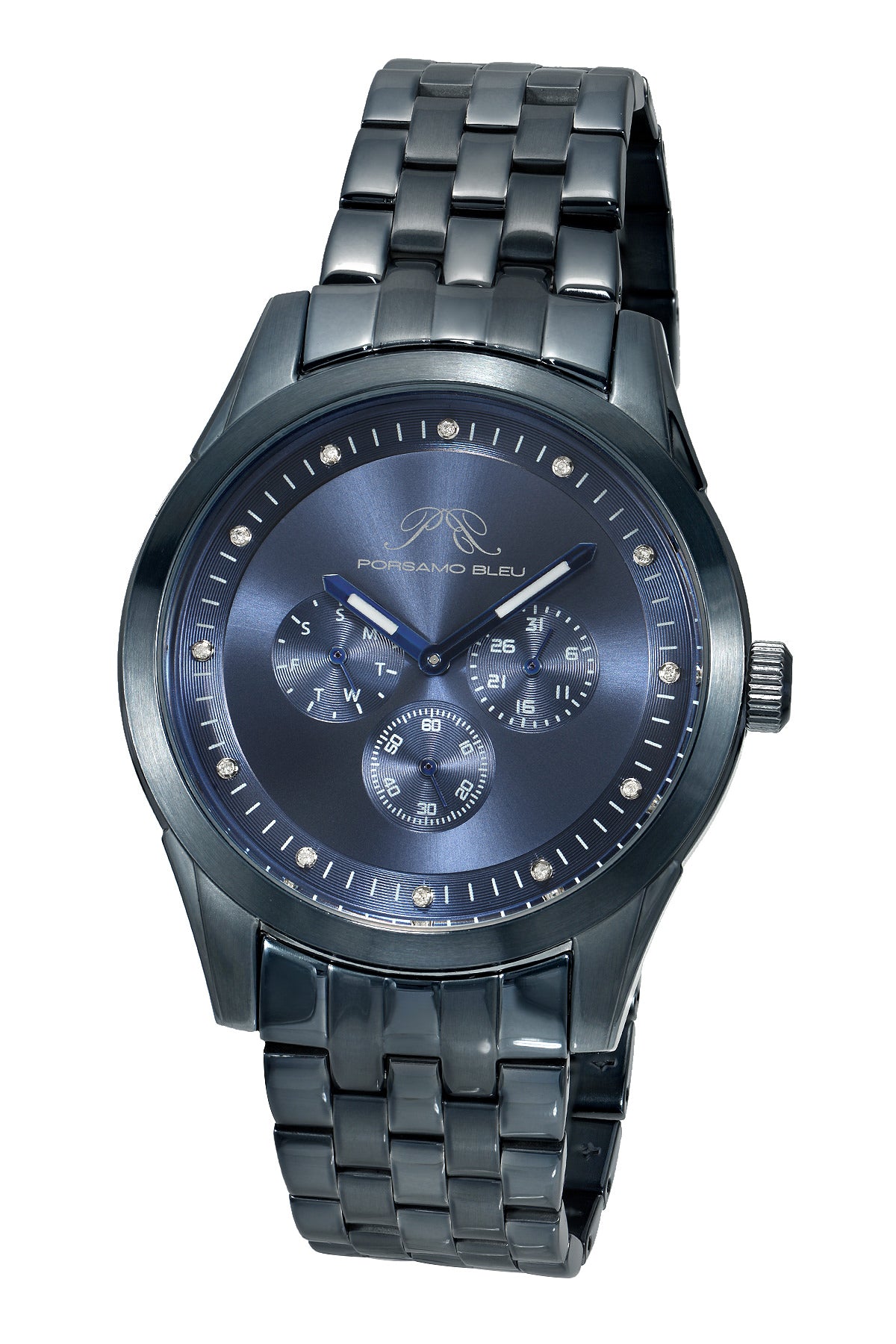 Elegant and sophisticated, the Vince features a sunray dial in blue, housed in a blue round stainless steel case. Paired with a stainless steel bracelet, protected by a sapphire?coated crystal, accented with sparkling diamonds, day and date windows keep you on schedule—a classic design with a touch of modern romance.